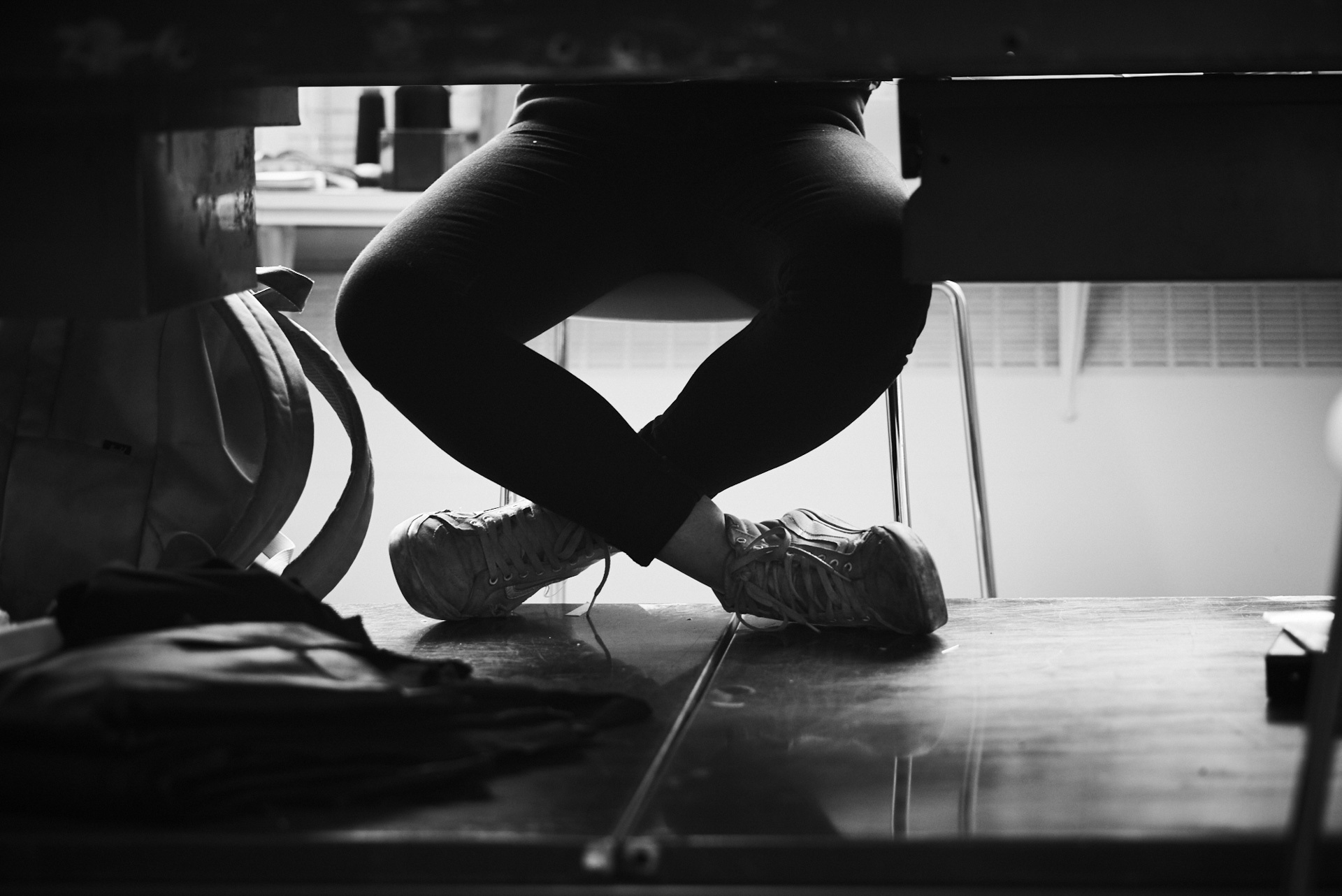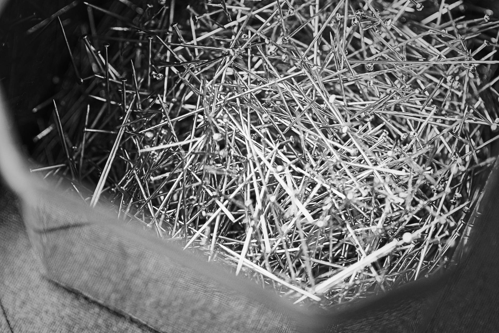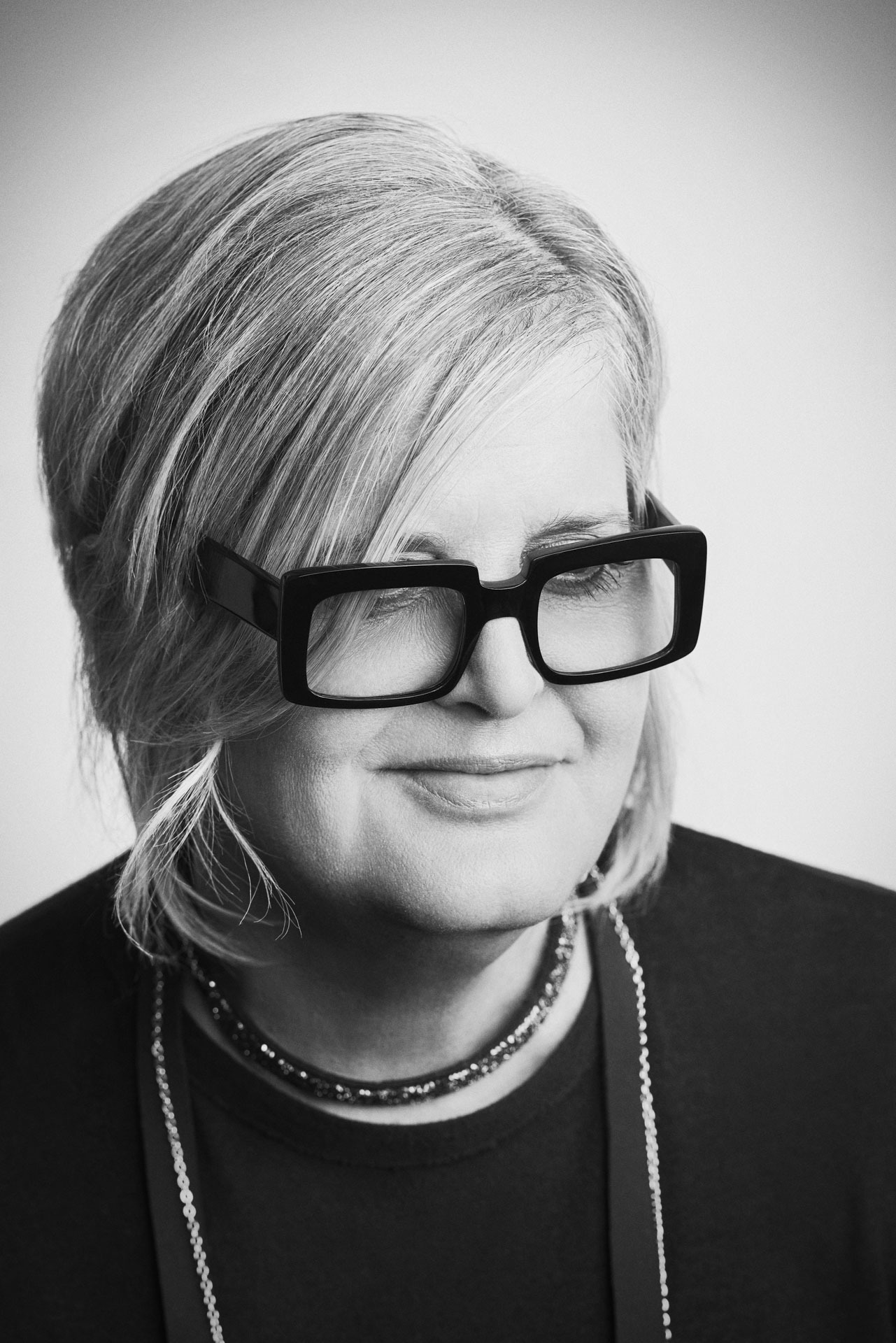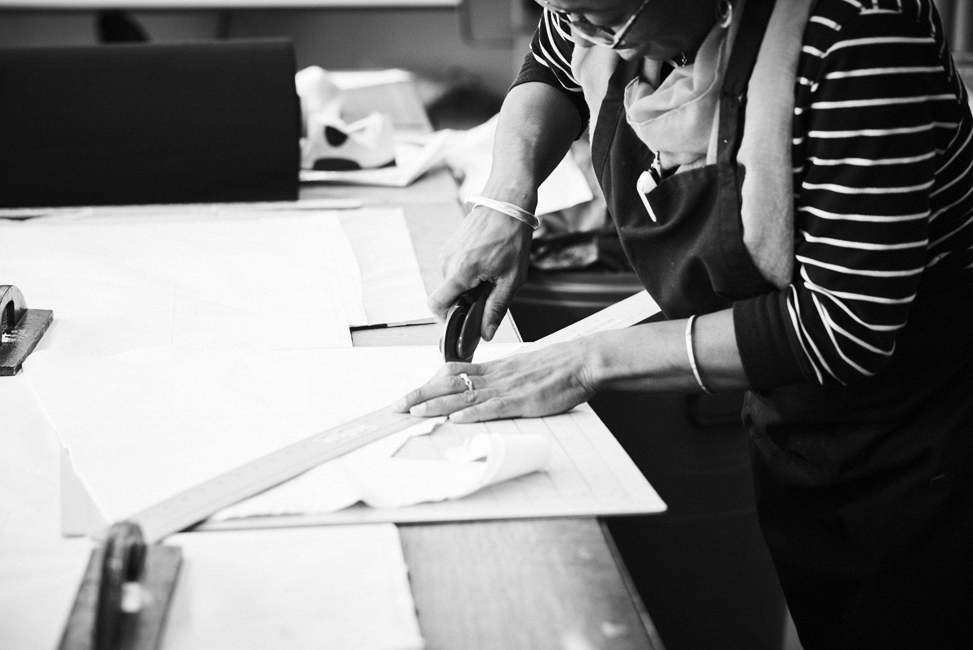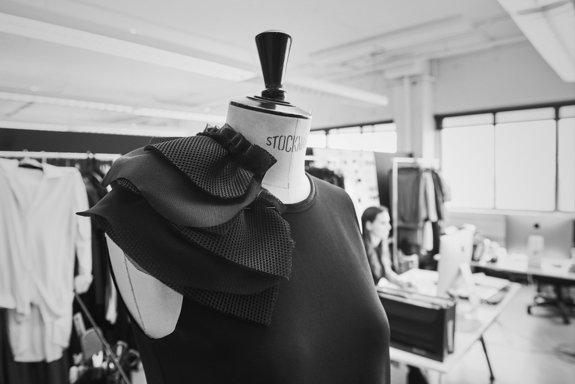 derrière ces imposantes lunettes, se dessine l'une des créatrice de mode les plus en vue à montréal. tout en simplicité et souriante, elle nous fait découvrir son atelier de travail.